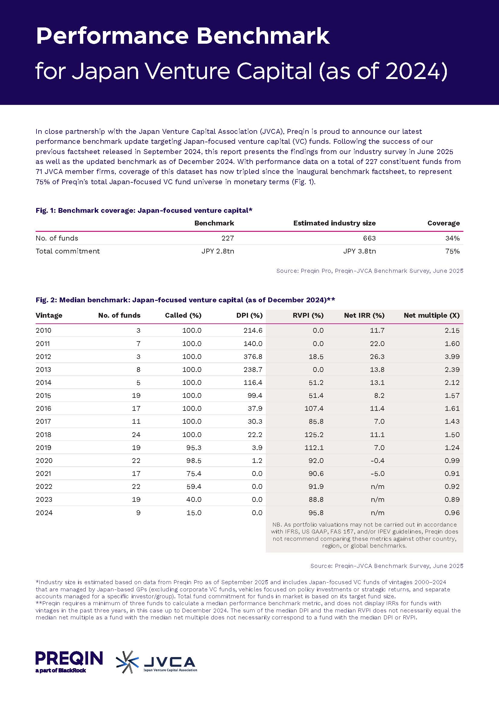 In close partnership with the Japan Venture Capital Association (JVCA), Preqin is proud to announce our latest performance benchmark update targeting Japan-focused venture capital (VC) funds.