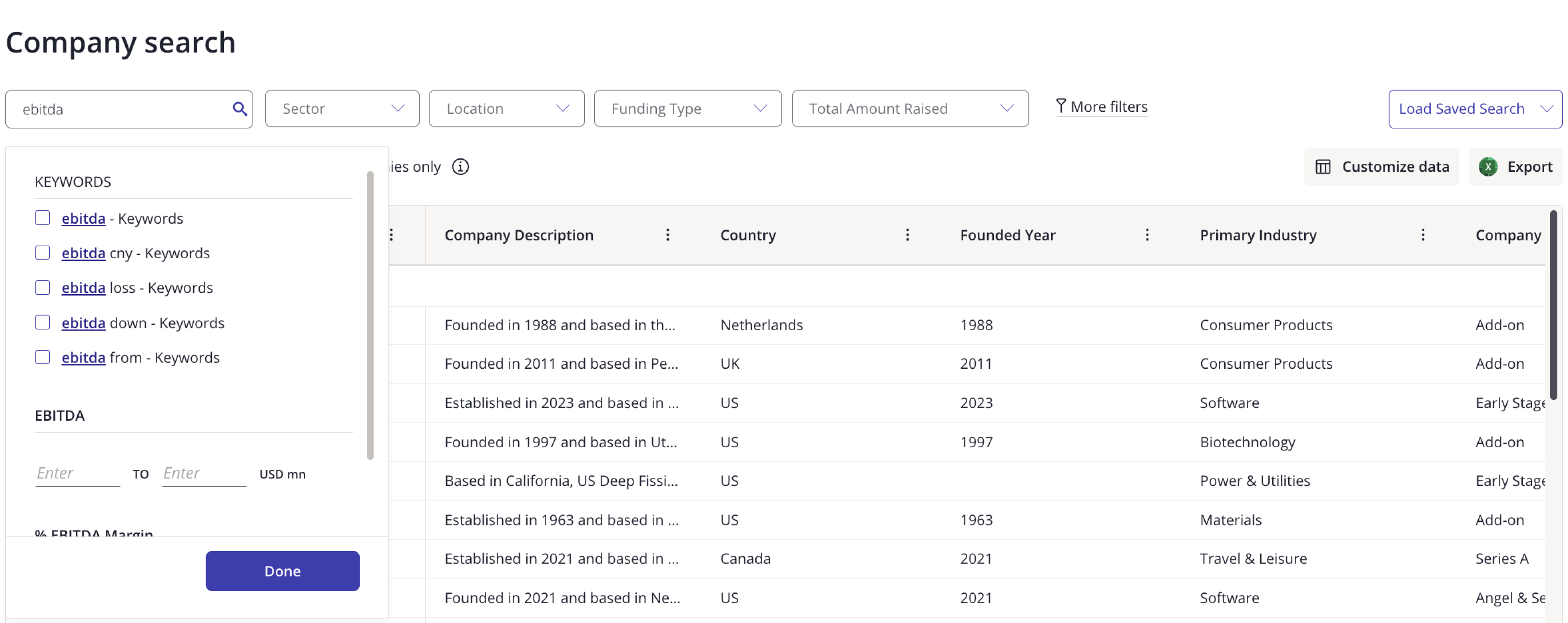 If you are working with a sponsor on an add-on strategy to help them expand their business, you can quickly identify potential companies via Company Search.