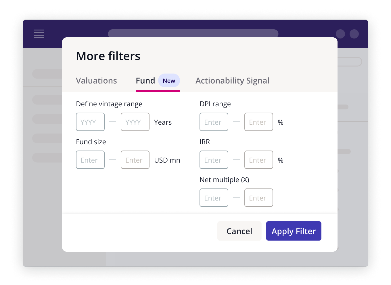 Apply Preqin’s Actionability Signal to further refine your search criteria.