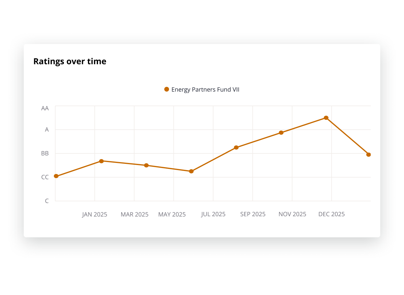 When viewing credit ratings on individual profiles, hover over the chart to see how ratings have changed over time and export the chart as a PDF or image to use externally.