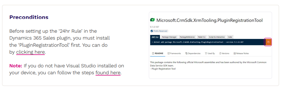 Link 1: https://www.nuget.org/packages/Microsoft.CrmSdk.XrmTooling.PluginRegistrationTool