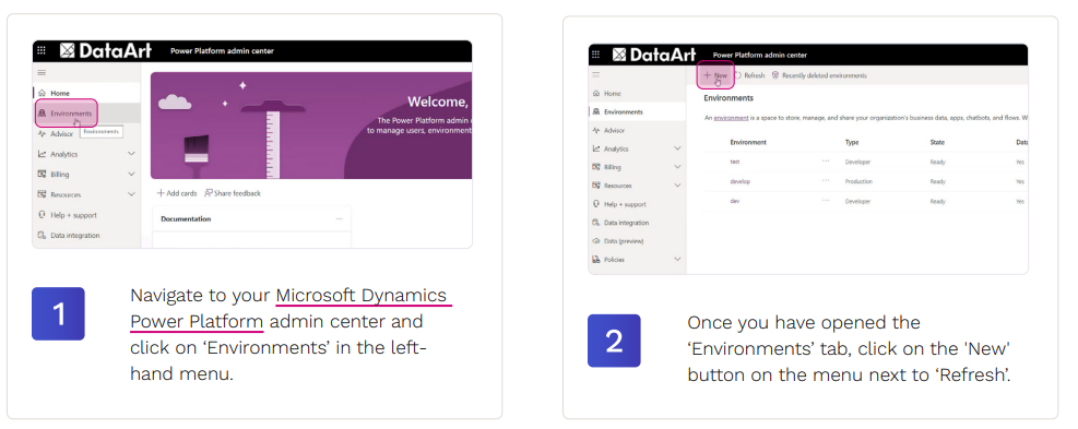 The first step to install the Preqin for Dynamics 365 Sales plugin is to create a new environment in Dynamics. To do so, simply follow these easy steps.