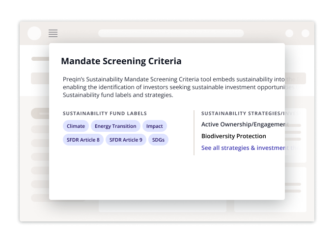 All Preqin Sustainability clients can access this information by viewing a fund profile's description and clicking on the Sustainability tab.