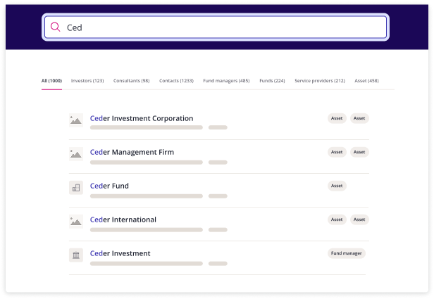 If you know the name (or part of the name) of the firm or asset you are looking for, start typing in the Quick Search box in the top navigation bar.