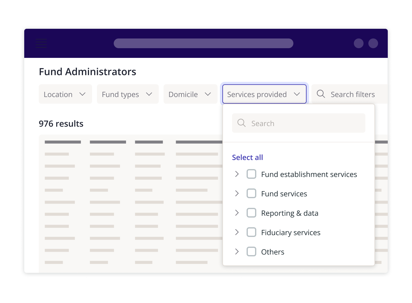 You can now filter fund administrators by services provided – such as fund establishment services, fund services, reporting and data, and fiduciary services. Users can easily search for fund administrators based on the specific services they require, making it quicker to identify the right one for you.