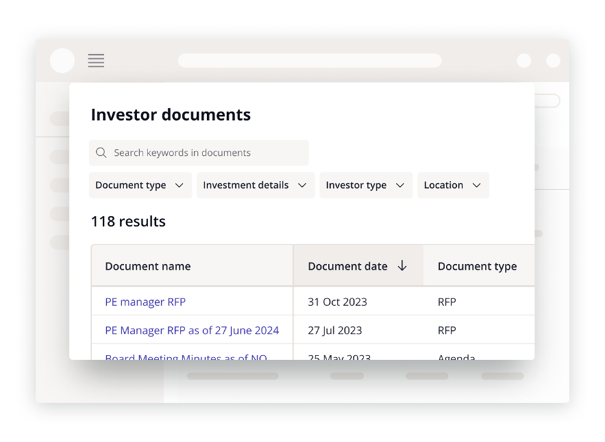 Leverage a range of filters to easily refine your results by keyword, document type, investment details, asset class, investor type, and location – saving you time and effort in locating the information you need.