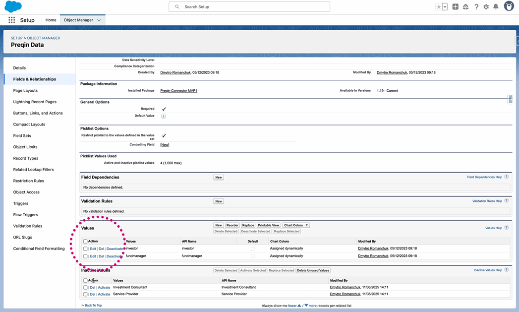 To add the new values, click ‘Activate’ on the relevant new data types from the ‘Inactive Values’ section. As a reminder, this must be aligned with your existing Preqin package.