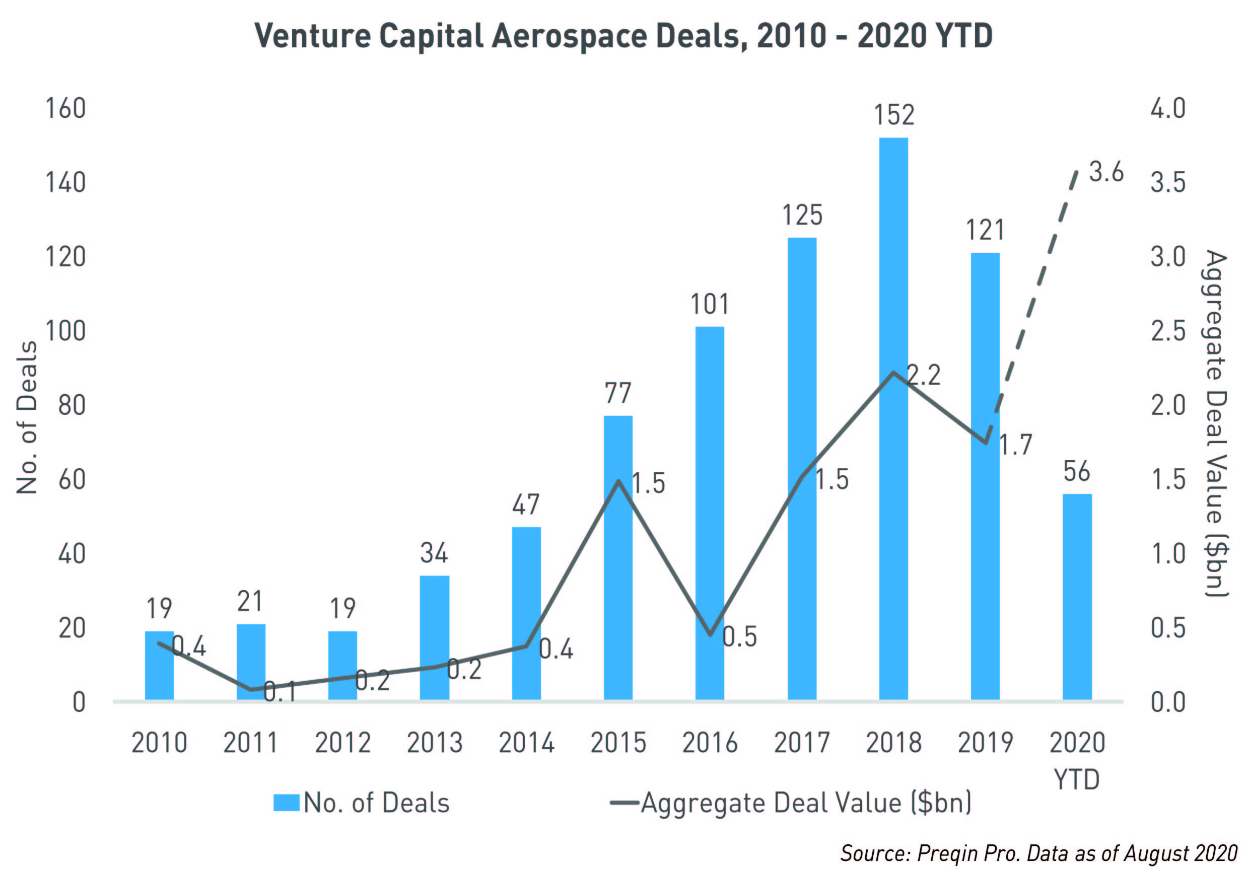 Despite the earthly challenges of 2020, investors clearly see opportunity in the aerospace sector. Even after the SpaceX deal is removed, aggregate deal value so far in 2020 ($1.67bn) would be almost on par with last year’s total ($1.75bn). A far cry from the $0.45bn in deal value observed in 2016.