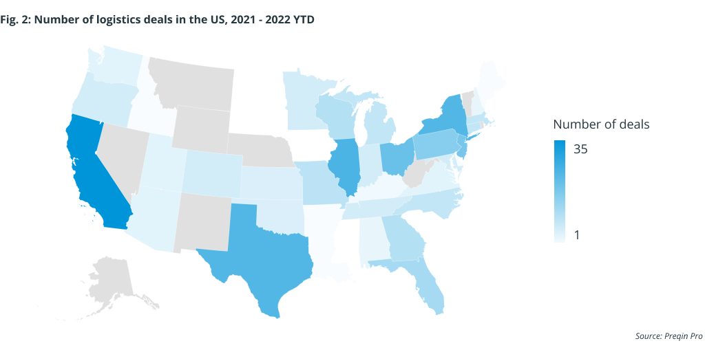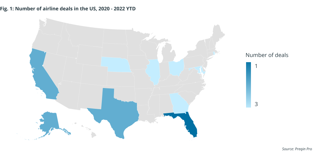 Airline deals in the US have been concentrated around air hubs. The location of airline deals largely shadows those of the wider logistics sector, further illustrating the demand for air cargo.