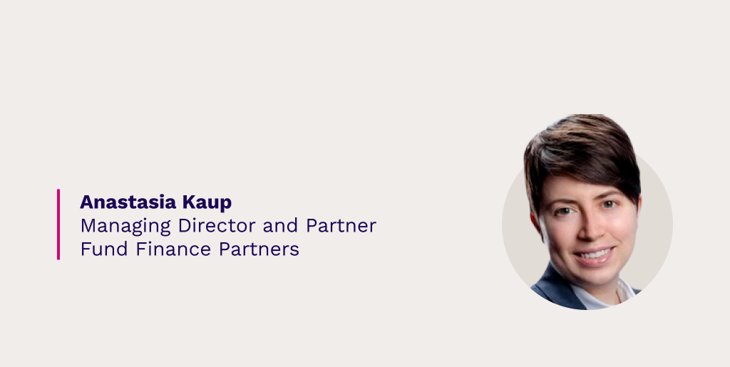 Anastasia Kaup is a Managing Director and Partner at Fund Finance Partners. Anastasia advises established and emerging asset managers on various debt financing solutions to achieve their objectives. Her clients include some of the largest asset management firms in the world, across private equity, private credit, real estate, and other asset classes and fund strategies. Anastasia also Co-Chairs the Diversity in Fund Finance initiative for the Fund Finance Association, the industry association for fund finance.