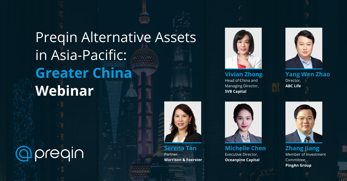 At a Preqin webinar on 19 August, we heard from panelists Yang Wen Zhao, Director at Agricultural Bank of China Life; Vivian Zhong, Managing Director at Silicon Valley Bank Capital; Michelle Chen, Executive Director at Oceanpine Capital; and Zhang Jiang, Member of Investment Committee at Ping An Group. The panel was moderated by Serena Tan, Partner at Morrison & Foerster.