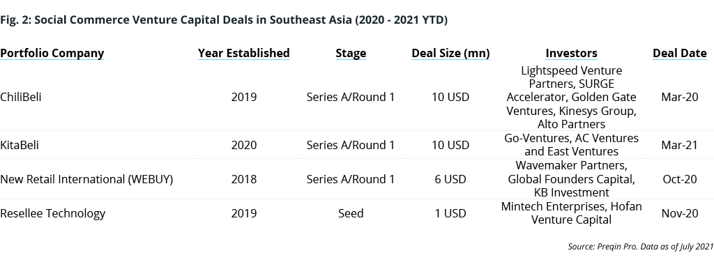 Although deal sizes in the social commerce sector are relatively small compared to the other blockbuster deals that have taken place in 2021, competition is heating up between social commerce apps. However, there is still room to grow in new, underserved cities or specialized verticals such as beauty and electronics.