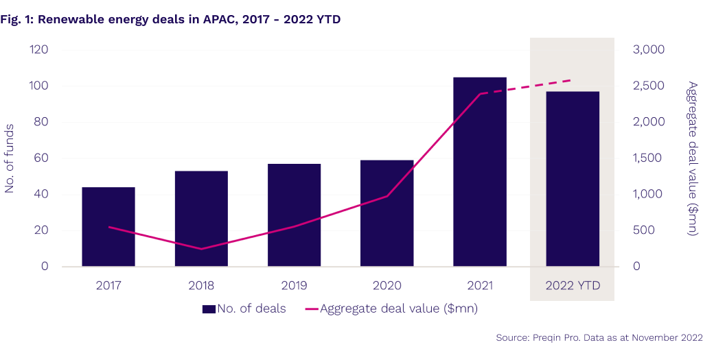 Fast forward to now. The war in Ukraine, supply chain disruptions, and global inflation have made it challenging for private capital industry players to place the same level of focus on ESG when profits are under threat. However, the bright side is that governments, sovereign wealth funds, and conglomerates in APAC have continued to invest in innovative solutions focused on clean, renewable energy.
