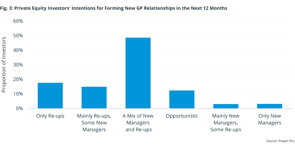 The majority of surveyed investors plan to include at least some re-ups in their allocation. We expect this portion to increase as the industry matures. As a result, capital concentration is likely to increase further, making it more challenging for first-time managers to attract commitments.