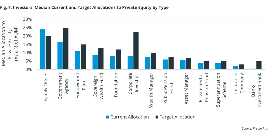 Analyze LPs’ current vs. target allocations for private equity