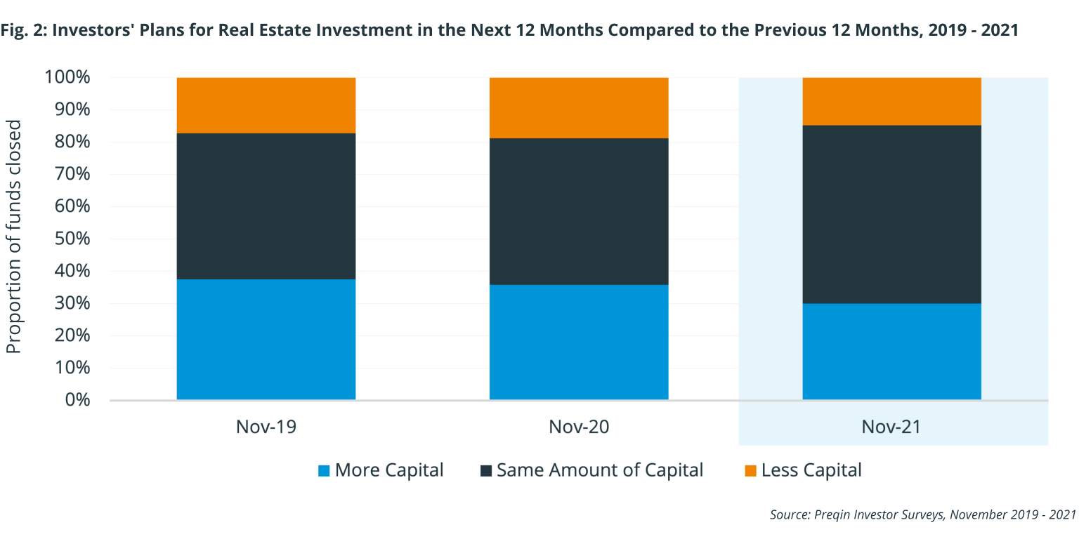 Over a 12-month view, 38% of survey respondents to our investor survey in 2019 said they would increase their allocations to real estate, meaning we’ve seen a decline of nine percentage points over the past two years.