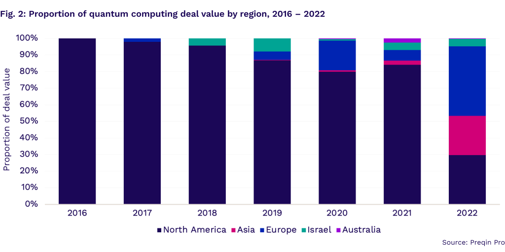 Well-known VC firms, such as Cambridge-based Amadeus Capital Partners, New York-based Bessemer Venture Partners, New Hampshire-based Alumni Ventures Group, and Paris-based Quantonation – the first VC firm dedicated to deep physics and quantum technologies – have poured cash into developing prototypes. After closing its first fund with $50mn in 2021, London-based 2xN is targeting $120mn for its second fund, which will deploy capital to quantum computing start-ups.