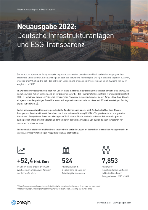 Dieses Informationsblatt zeigt die Veränderung des deutschen alternativen Anlagenmarkt im vergangenen Jahr und betrachtet welche neuen Möglichkeiten ESG eröffnet hat.