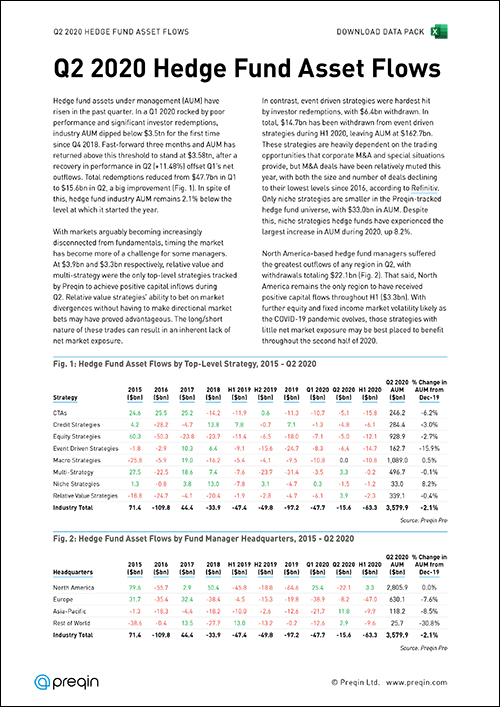 In this factsheet, we present hedge fund asset flow data for Q2 2020, including breakdowns by strategy, region, past performance, and fund size.